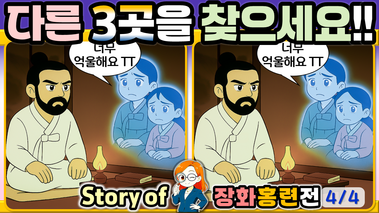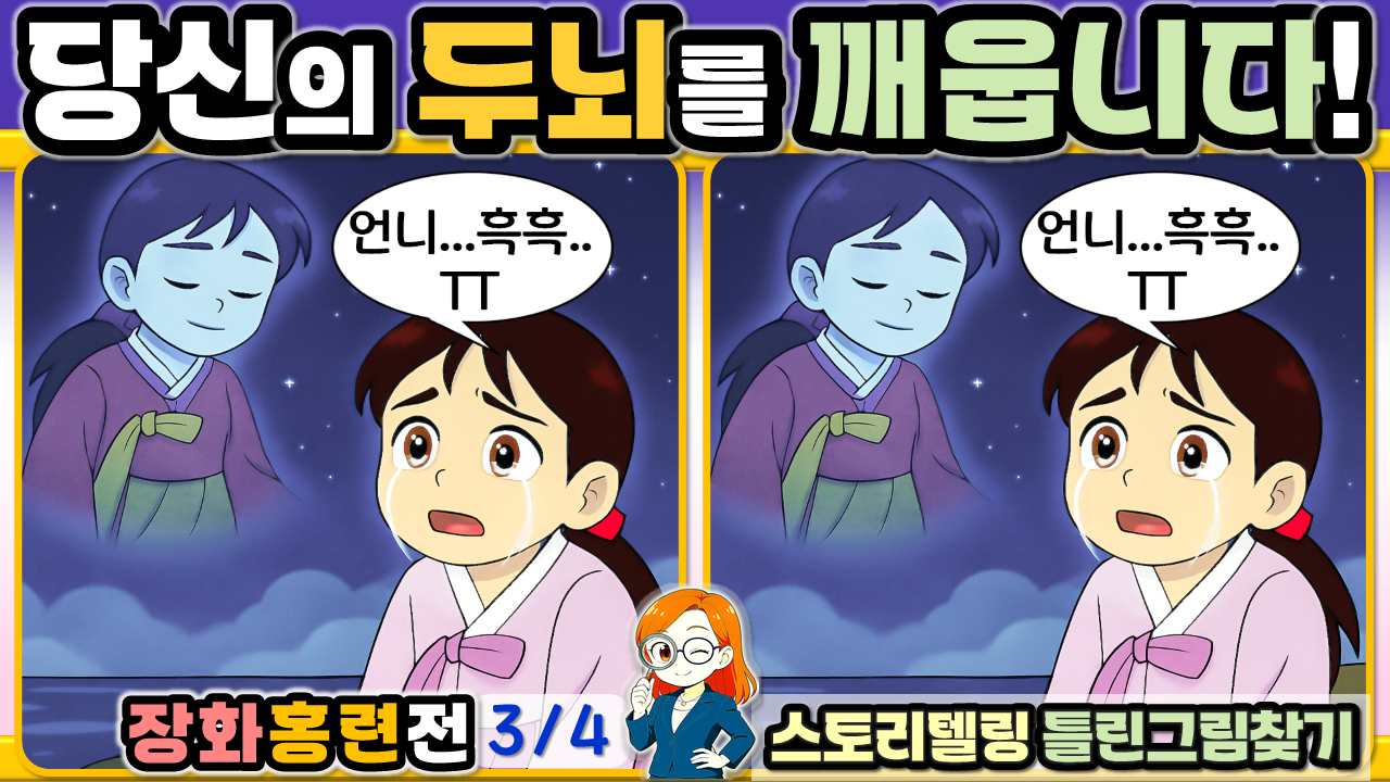 https://youtu.be/Q4YTzR2P1Rk?si=AgchUoslPTRLNCv-본 틀린그림찾기(다른그림찾기) 퀴즈는 한국 전래동화 '장화홍련전'의 장면들을 각색하여 만들었습니다. 재미있는 이야기와 함께 두뇌건강도 챙겨보세요.😊👍 🧠 두뇌를 깨우는 집중력 테스트! 시각과 두뇌를 동시에 활성화하고 주의력, 기억력, 사고력을 강화하세요! 이 게임은 스토리텔링 요소가 있어 어린이부터 할아버지, 할머니까지 모두 즐길 수 있어요. 🎯 틀린그림찾기의 효과 ✔ 집중력 & 주의력 향상 ✔ 시각적 기억력 증진 ✔ 추리력 & 창의력 강화 ✔ 스트레스 해소, 정서 안정 🔍 Brain Puzzle Memory Boost Daily Mind Challenge 📢 좋아요 & 댓글로 의견을 남겨주세요! 😊 ?..