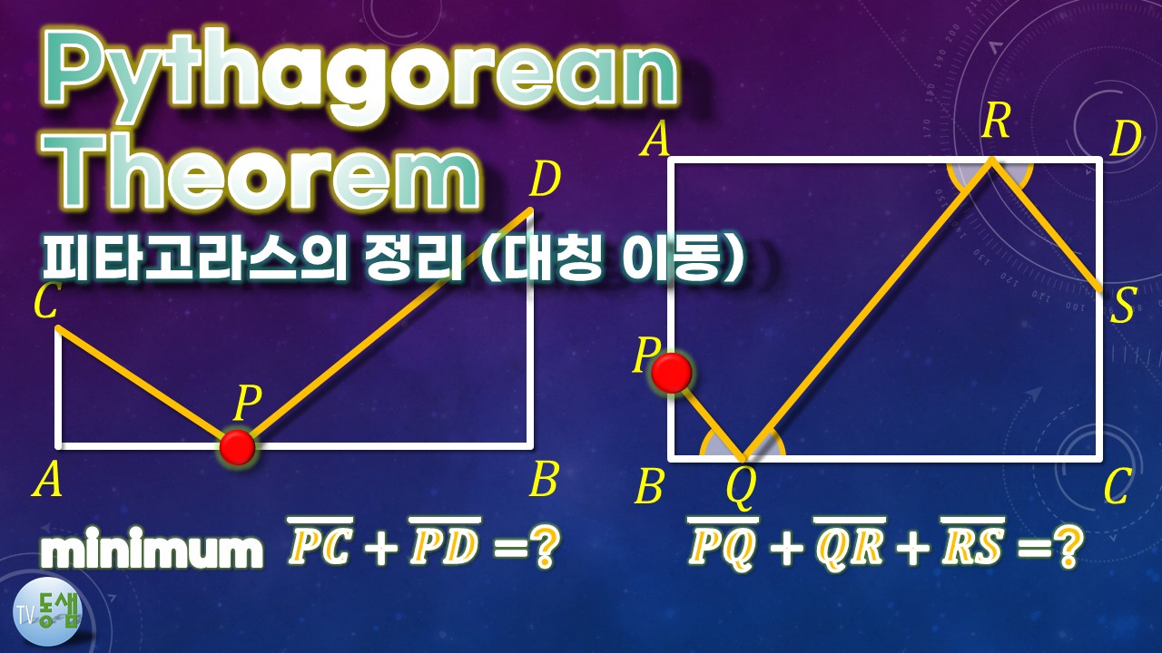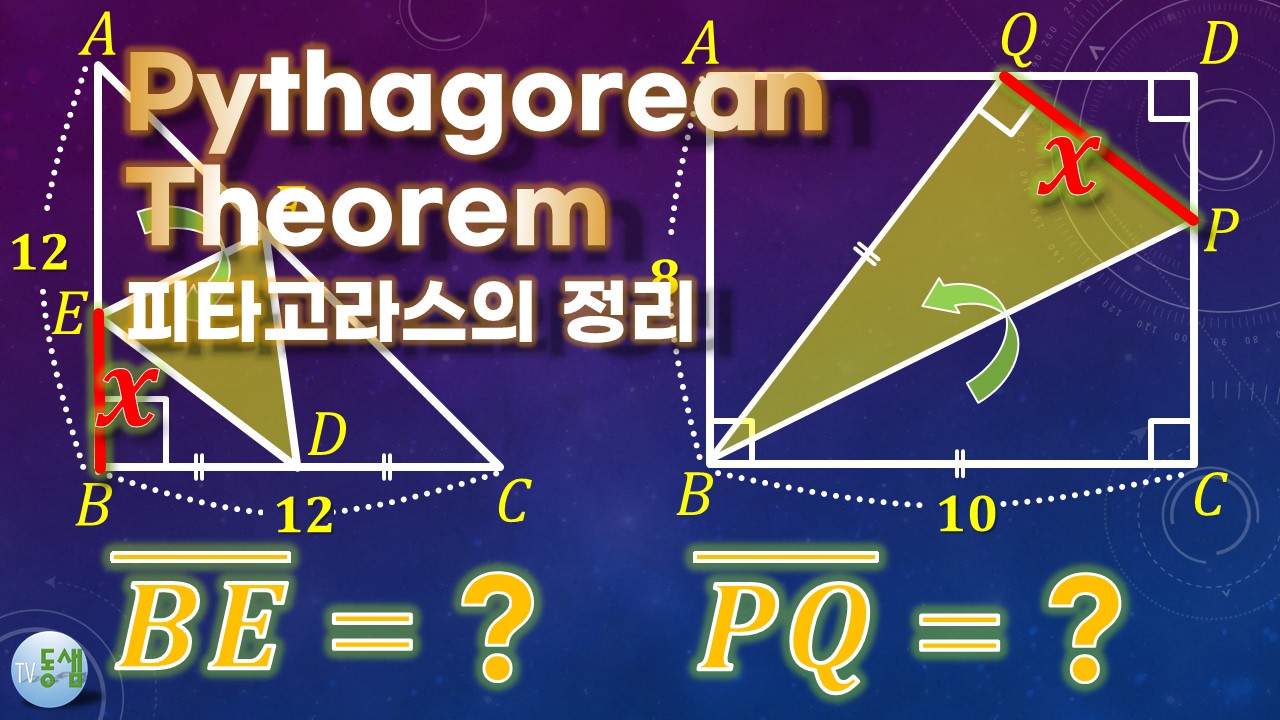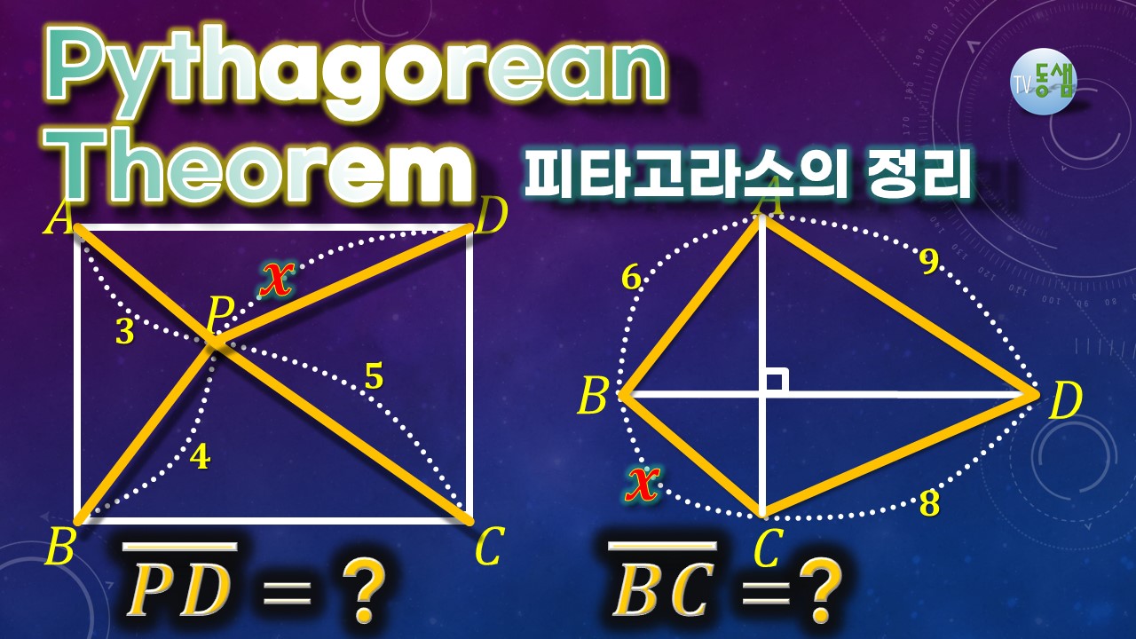 youtu.be/wqFNiCuA6Tc 피타고라스의 정리 (6), PD=?, BC=? (직사각형 내부의 한 점, 대각선이 직교하는 사각형)/ 중2 수학 교과서 문제, [파워포인트 애니메이션] #TV동샘 한국 중학교 2학년(미국 8학년) 수업시간의 피타고라스의 정리( Pythagorean theorem) 기본적(교과서에 나오는) 문제 중 하나입니다. 음성 설명은 없지만 충분히 이해가능합니다. 한번에 이해가 안되는 학생은 영상을 반복해서 보시면 반드시 알게 됩니다.^^ 피타고라스의 정리( Pythagorean theorem)를 배우는 학생이 아니더라도, 재미삼아 보셔도 좋습니다. '구독', '좋아요' 부탁합니다. ^^ : ) #TV동샘 #도형한문제 #피타고라스 #Pythagorean #2학기수학