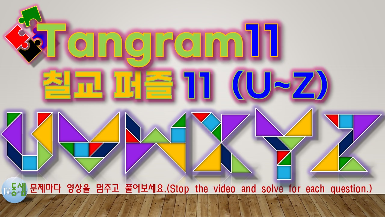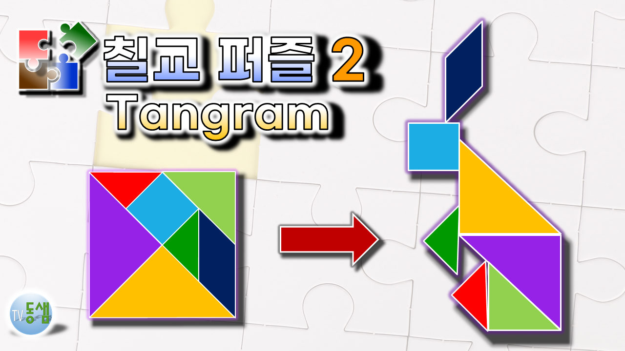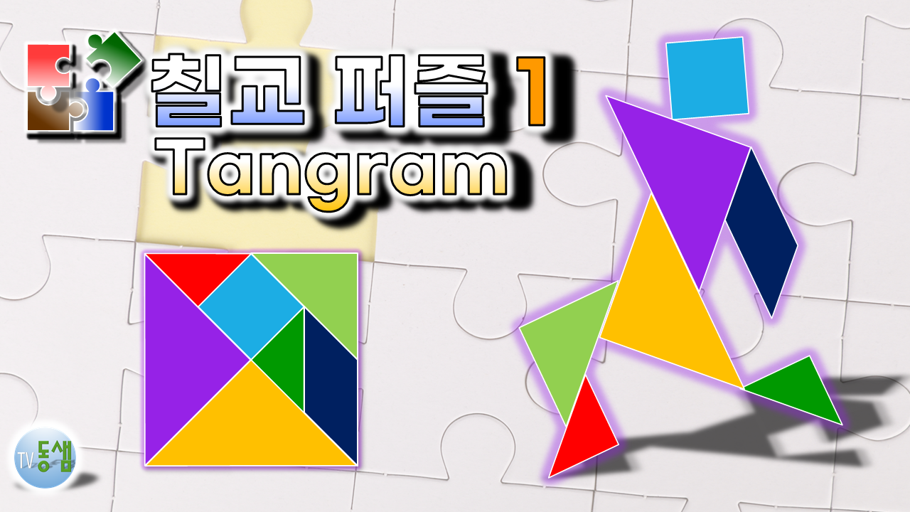 https://youtu.be/QLsQxL7XPcU 구독! 좋아요! 댓글! 부탁드려요^^ 칠교(Tangram)은 정사각형을 7개로 나눈 조각으로 여러가지 모양을 만들어보는 일종의 퍼즐(puzzle) 게임입니다. 5문제예요. 단체수업등에 활용하는 경우 각 문제가 나가고 카운트다운이 시작되면 화면을 멈추고 각자 퍼즐을 맞추어본 후 정답을 보는 방식으로 진행하면 좋을 것 같습니다. (칠교 퍼즐은 색종이로 간단히 만들수 있습니다.) 그리고, 수업 시간에 활용하시는 경우에는 가능하면 여기 댓글에 남겨주시고, 해당 수업 영상이 있는 경우 관련 링크를 남겨주시면 감사하겠습니다.^^ (안하셔도 괜찮습니다만....^^)